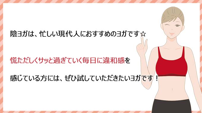 「リラックス」や「アロマ」、「デトックス」等はパッと見てわかりますが「陰ヨガ」って、いったいどんなヨガなんだろうと思うことはありませんか?