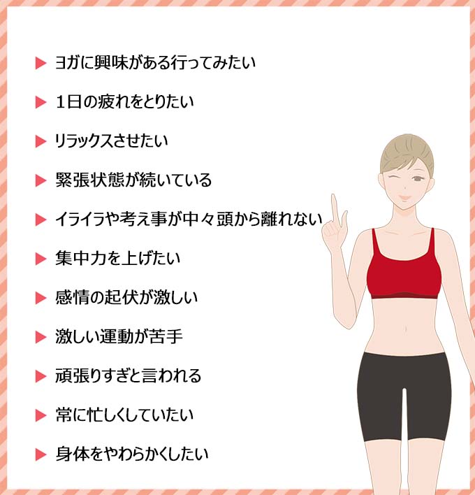 仕事や家事などで、忙しい期間が続いていたり、緊張がとれない、など現代人の悩みにもピッタリなタイプのヨガになってます。