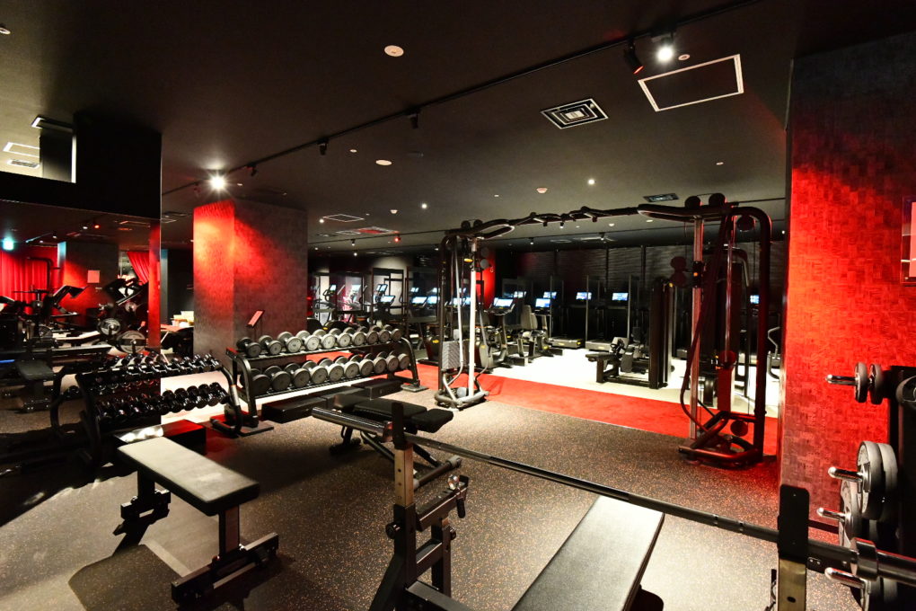 ジムの内装は、ブラックとレッドの色調でスタイリッシュな印象。都会的なインテリアでトレーニングのモチベーションも高まるでしょう。仕事前にサクッとトレーニングをしてから出かけるのもおすすめです。