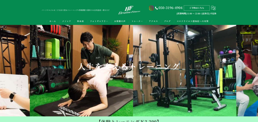 二子玉川駅から徒歩3分の「Elevation Fitness(エレベーション フィットネス)」は、完全個室のプライベート空間で、オリジナルメソッドを用いたパーソナルトレーニングを提供しています。骨盤調整や整体、最先端の血流制限トレーニング、食事指導などを組み合わせ、個々の目標や体調に合わせたオーダーメイドのプログラムを実施しています。