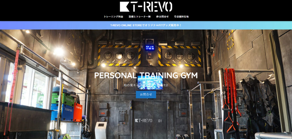 T‑REVO 01は、天井高7mの“秘密基地”のような非日常空間で、個性的なクロスフィット・TRX・EMSなど多彩なメソッドを提供するパーソナルジムです。完全予約制&手ぶらOK。大会優勝者トレーナーによる指導で、体づくりもコンディショニングも集中して取り組める支持される店舗です