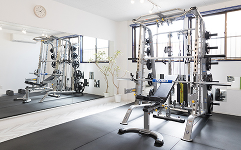 RAISE.(レイズ)のトレーニングルームは開放感たっぷり!広々としたスペースに、様々なトレーニングが行える複合型機材が設置されており、パーソナルトレーニングに十分な施設となっています。