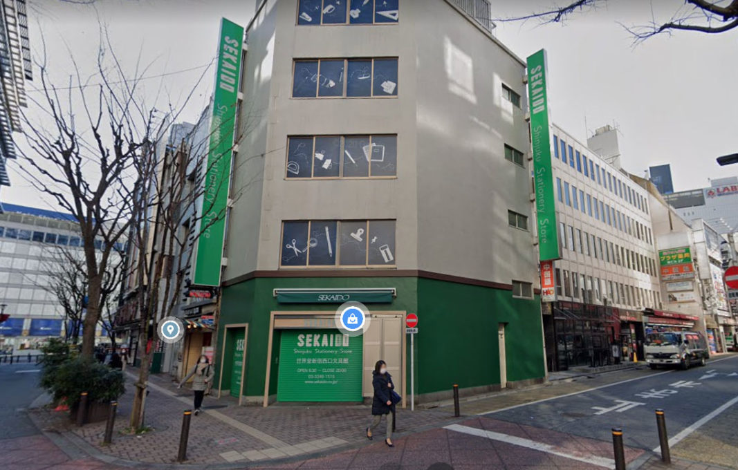 ヨドバシカメラマルチメディア北館を左手に通過し、世界堂(画材屋)のビルの角を左折します。