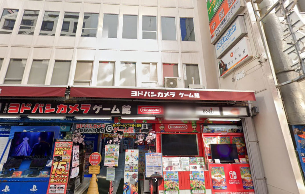 おかしのまちおかがある向かいの河野ビル(1階ヨドバシカメラゲーム館があるビル)の4階がLAVA(ラバ)新宿西口店です。※奥にエレベーターがございますのでご利用ください。
