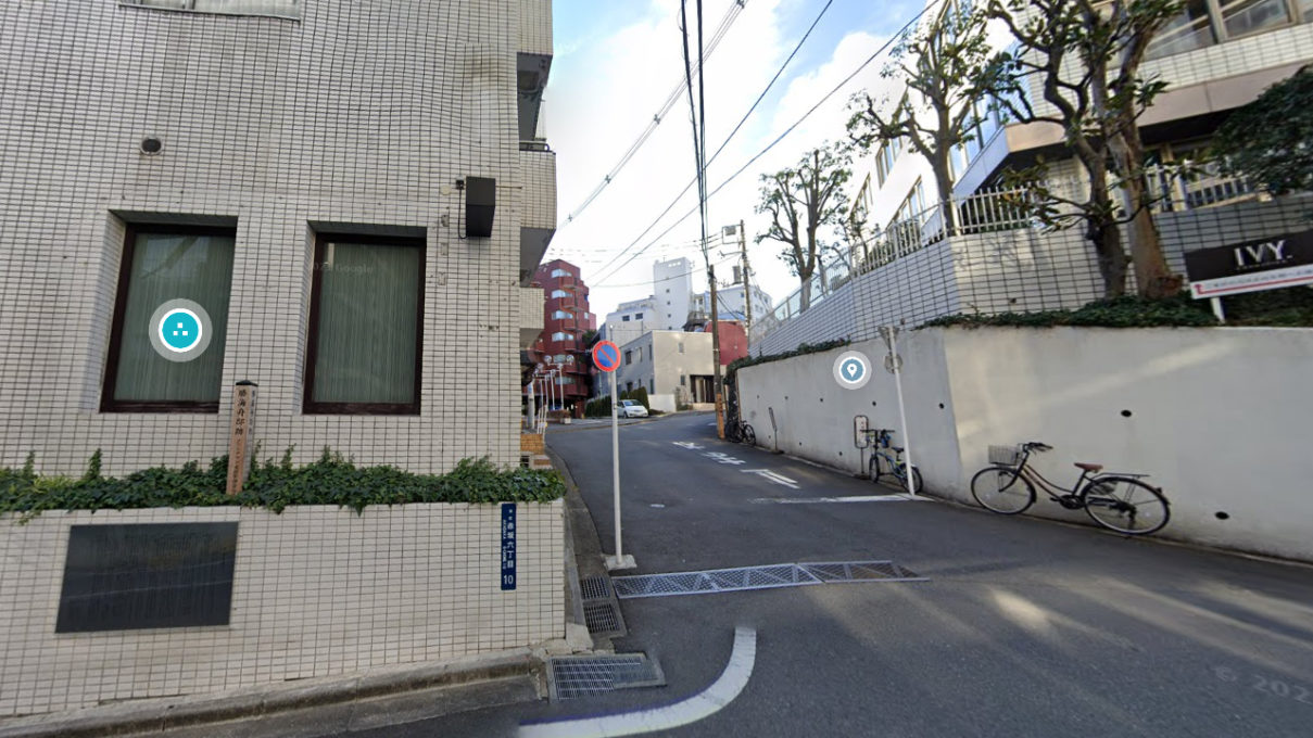 セブンイレブンが左前方に見えたら左折し、氷川坂を直進します。