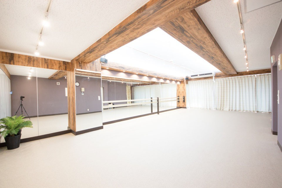 柏スタジオは最大20名を収容する、大きな窓から自然光が入る開放感あるスタジオで、ゆったりとヨガを楽しむことができます。