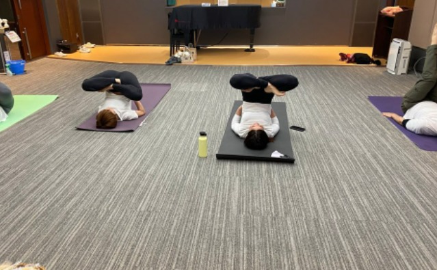 レッスンは、初心者の方も参加できる「やさしいヨガ」プログラムを始め、「パワーヨガ」・「健康ヨガ」など、定員15名までのクラスにて指導してもらうことができ、オンラインにてレッスンを受けることも可能。