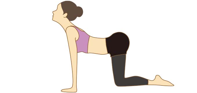 四つん這いになり息を吸って胸を前に出す、吐いて背中を丸める、これも初心者でもできるポーズです。