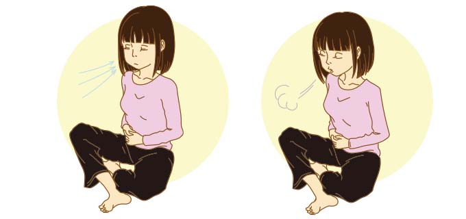 吸う時にお腹を膨らませ、吐くときにへこませます。