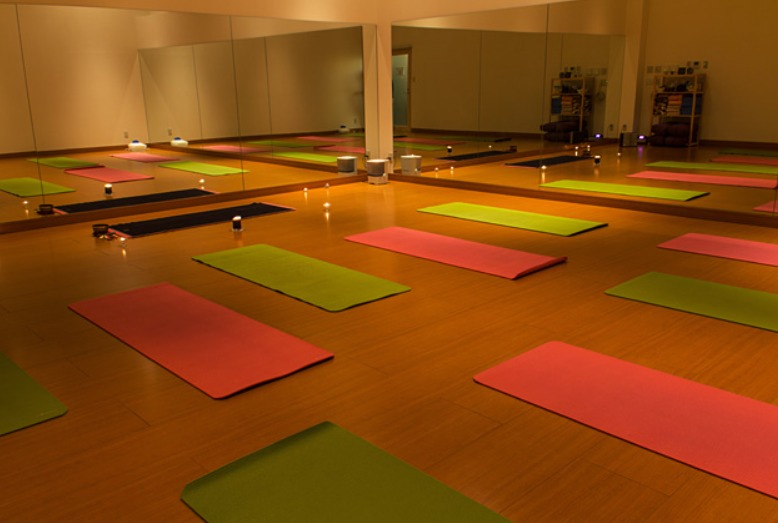 ショッピングセンターに入るスタジオ。床暖房で冬場でも快適です。リラックス系からパワフルヨガ系までレッスンメニューが揃います。