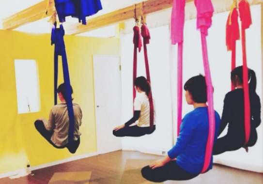 レッスンは、天井から吊り下げた布を使用したヨガレッスンを受けることができ、エアリアルヨガ特有のポーズで身体をほぐすことができます。初心者向けの「スタンダードクラス」もあるので、ヨガ経験の無い方も安心してレッスンに参加でき、経験者の方には「パワークラス」もあるため、レベルに応じたレッスンが受けられます。