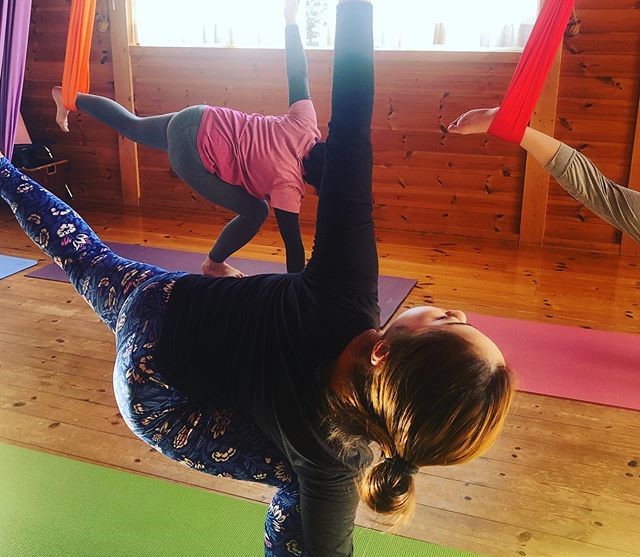・ハンモックを使用したヨガレッスンで、身体を無理なく伸ばすことができます。